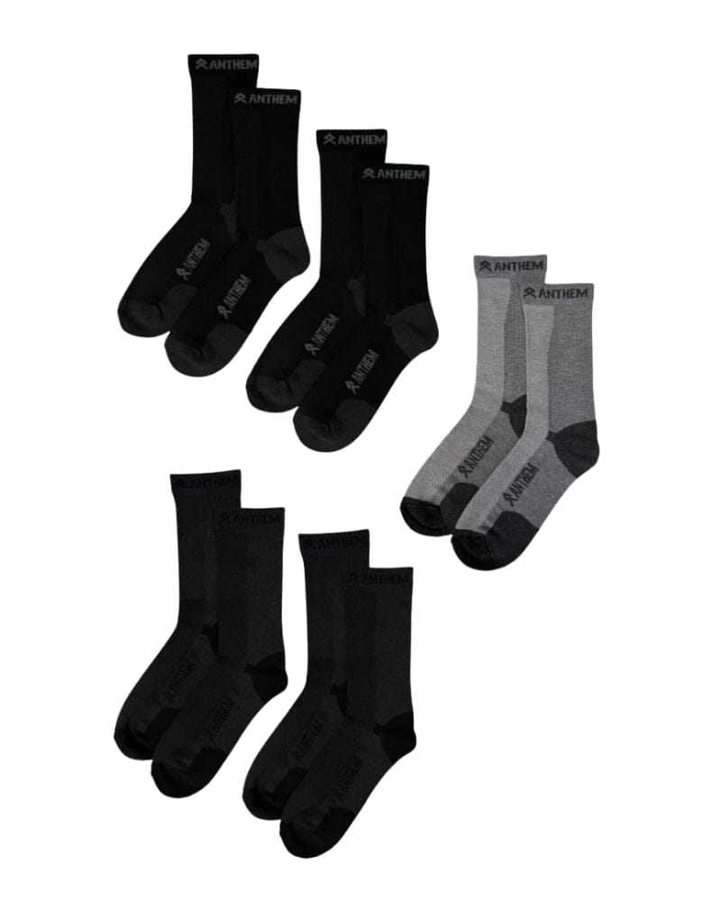 Our Performance Crew Socks bring soft cushioning where it counts, breathability where you need it, and copper yarns with natural antibacterial power that keep them fresh no matter how hard the day gets. From Monday site starts to Friday knock-off, they don’t quit before you do.