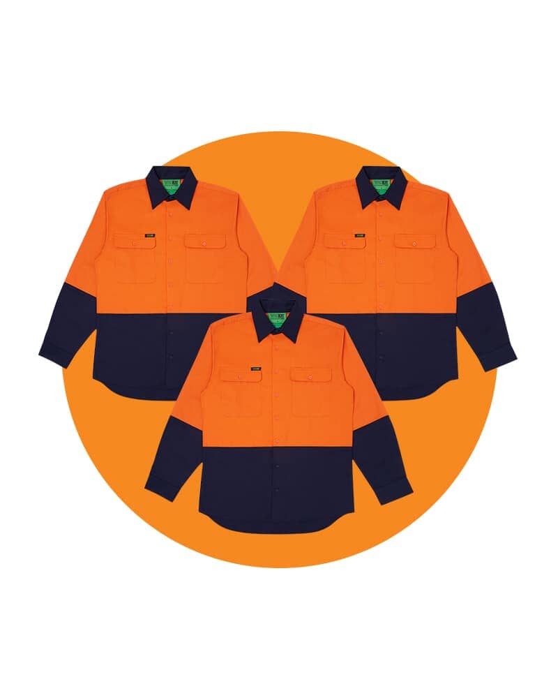- 3 x Workit 2003 Hi Vis Cotton Drill Shirt LS